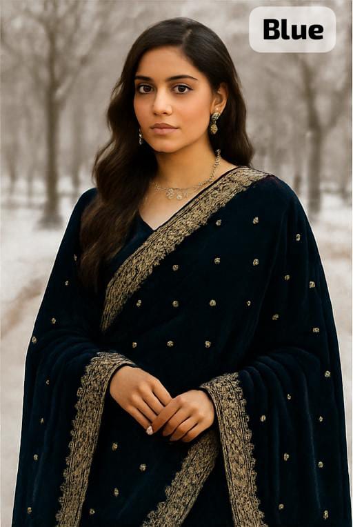 WINTER SHAWLS For Girls. FOUR SIDE BORDER WITH EMBRODIED WORK Original 90 inch Shawl 100% Pure Microvelvet